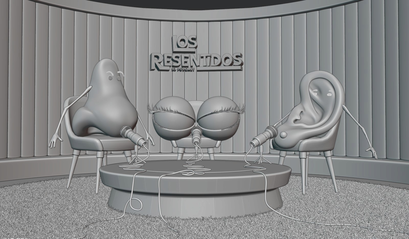 Planet 141 needed detailed and production-ready 3D assets for Los Resentidos, a stylized animated series inspired by a podcast format. Although Okto wasn’t responsible for the animation itself, our role was essential in ensuring that all assets — from textures to lighting setups — were optimized for a fast and efficient rendering process without losing visual realism.
